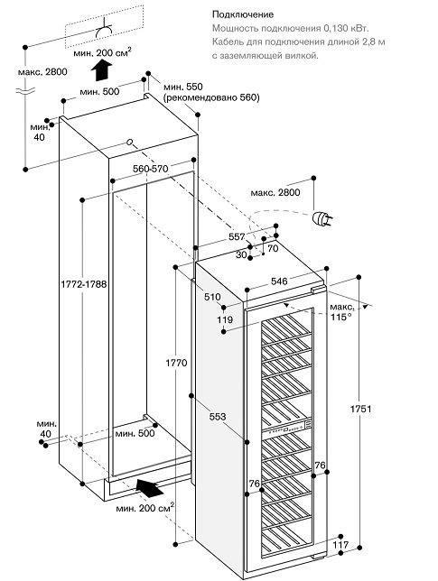 - Габариты ниши (ВхШхГ): 1772-1788x560-570x550 мм