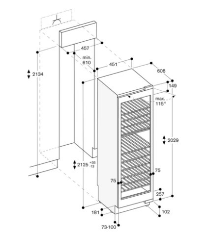 - Габариты ниши (ВхШхГ): 2134х457х610 мм