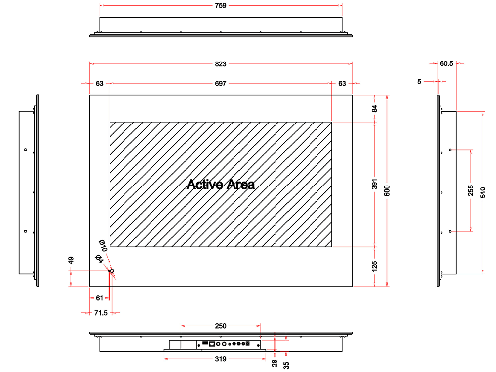 - Размеры устройства (ШхВхГ): 823х600х60.5 мм